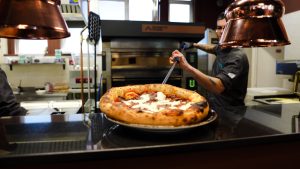May72025#RoadToSmartBakingThe founders Marco, Nicolas and Diego and their project where the oven takes centre stage In Pesaro, nestled in the lively setting of Baia Flaminia, a new and already popular pizzeria opened its doors a year ago under the name Baambagia. Three young entrepreneurs – Marco Merli, Nicolas Donini and Diego Monaldi – brought to life a project that is, above all, a love letter to their local area and to the culture of quality leavened products. Baambagia was born from the meeting of different paths: experiences abroad, university studies, and work in the food and beverage industry. But above all, it came from a desire to create a space of their own – a place that would tell a story of passion, research, and deep connection. “We worked together for a long time,” says Diego, “and at a certain point we realised the time had come to launch something that truly reflected who we are.” Choosing the oven was one of the first crucial steps. Baambagia selected a S series S120E Icon, perfectly in tune with the venue’s philosophy. “It was important for us to honour our territory also through the equipment we use,” explains Marco. “Moretti Forni stands for innovation and quality, it’s a brand we feel close to, not only for its values but also because of our shared roots.” The oven is not just a technical tool; it is the central heart of Baambagia. Its elegant, modern design blends seamlessly into the space, so much that it’s placed right at the centre of the restaurant, in full view. “It’s our engine, the symbol of our concept of a pizzeria,” says Marco. The choice of two Multibake decks has proved ideal for the format, allowing great versatility: including the production of ‘pizza al metro’, perfect for sharing, with precise and even baking every time. “The oven guarantees consistent quality even during the busiest times,” Marco explains. Anyone who’s visited Baambagia on a bustling weekend will have noticed the surprisingly fast service, a sign of a well-organised team and a finely tuned operation. The oven is used for a variety of products: contemporary pizza, Roman-style focaccia, bread, and ‘padellini’ (pizzas baked in round pans). The integrated steamer has opened up new possibilities for a more diversified offering. The team also uses S series to experiment with new toppings, cooking ingredients directly in the oven (like mushrooms, roasted onions, and confit garlic) and creating house specials like their chilli-infused oil. At Baambagia, every pizza is carefully crafted: controlled fermentation, high hydration, and the use of type 1, type 2 and spelt flours result in light, fragrant, and digestible pies. “Our contemporary pizza is made by carefully managing humidity and temperature,” Nicolas explains. “The dough achieves exceptional lightness and crispness, which must be preserved through baking.” Alongside their contemporary pizzas, they also serve crunchy Roman-style focaccias and new creations like ‘maritozzi’ in both sweet and savoury versions. The guiding principle is to always use local ingredients: dairy products, cured meats, and carefully selected flours from the Marche region. The menu changes with the seasons. “We offer fresh, light pizzas without ‘over charging’ the dough,” says Nicolas. Among the most popular are the Nerano, inspired by Neapolitan tradition, and the surprising ‘Ti Piace il Pomodoro?’ – aka do you like tomato? -, a tribute to tomatoes in all their forms: roasted, confit, fresh, and sun-dried. It’s no surprise that Baambagia is fully booked every weekend, clear proof of positive word of mouth and an enthusiastic response from the people of Pesaro. Alongside Marco, Nicolas and Diego, the project also includes Michele, Luca, and Roberto. The first two are founders of the Birrificio Agricolo Alto Montefeltro (BAAM), a craft brewery based in Monte Cerignone in the Marche hinterland. The selection of craft beers at Baambagia directly reflects this background: beers inspired by local flowers and nature, perfectly paired with the contemporary pizzas in a well-curated and coherent match. The name ‘Baambagia’ incorporates the acronym ‘BAAM’, referencing the project’s origins, but it also evokes its etymological meaning of wild cotton – a symbol of softness, warmth, and natural simplicity. A concept that is fully reflected in the light, authentic, and carefully made doughs that express the soul of this project. Leggi ancheSilvia Ciccolini wins over Fabriano with her pizza full of personality10 September 2025Parco Manzoni Chooses serieS to Bring Its Culinary Philosophy to Life9 August 2025Granum in Alba Adriatica: the true contemporary pizza baked with Neapolis4 July 2025SEGRETA: How S series oven Brings true Roman Pizza al Taglio to Montréal13 June 2025Darsena del Sale: where Wellness and Cuisine come together11 June 2025From Piedimonte Matese to the USA: Jonathan Atzeni’s electric challenge30 May 2025