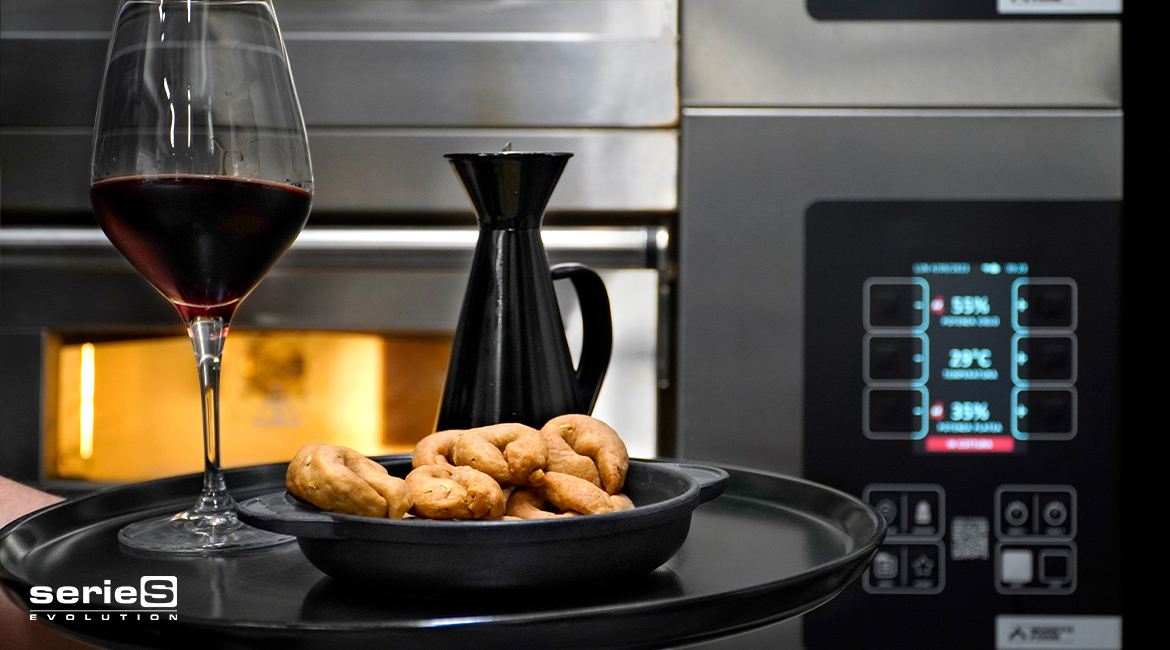 Oct72023RECIPESTaralli are a crisp and crunchy snack typical throughout southern Italy and originally from Puglia, loved by everyone and a must-have for an aperitif. They are composed of simple ingredients: flour, water, salt, and extra virgin olive oil, but you can also add spices or make them sweet. This is the classic version with fennel seeds, enriched with Primitivo di Manduria wine in the dough. Your customers won’t be able to resist the temptation! Thanks to the steamer and Dual-Power technology of S series, you’ll achieve even baking and a golden surface. How to make taralli INGREDIENTS 550 g remilled durum wheat semolina 200 g Primitivo di Manduria wine 125 g Extra Virgin Olive Oil 12 g salt 5 g fennel seeds Heat: S series Multibake, 200 °C, 35% top, 40% deck, 20 minutes METHOD: Place all the ingredients in a mixer and begin kneading. Once you have a smooth and homogeneous dough, cover it with plastic wrap and let it rest in the refrigerator for 30 minutes. Divide the dough into 15 g portions and shape the taralli, then place them back in the refrigerator for 15 minutes. Bring a pot of water to boil, then add the taralli. As soon as they float to the surface, remove and place them on a baking sheet lined with parchment paper. BAKING Set S Series Multibake to 200 °C, 35% top and 40% deck. Once it reaches the temperature, bake the taralli for 20 minutes, and use the steamer as soon as they are in the oven. Remove from the oven and let them cool before serving. How to Store Taralli: Once baked, taralli can be stored in bags or food containers for approximately 15 days. Leggi anchePumpkin sourdough bread21 October 2023Baked Stuffed Tomatoes with rice3 September 2023Puccia recipe: Soft and Fragrant Street Food from Puglia25 August 2023Empanadas6 August 2023Brioche col tuppo summer recipe with gelato21 July 2023Detroit style pizza7 July 2023