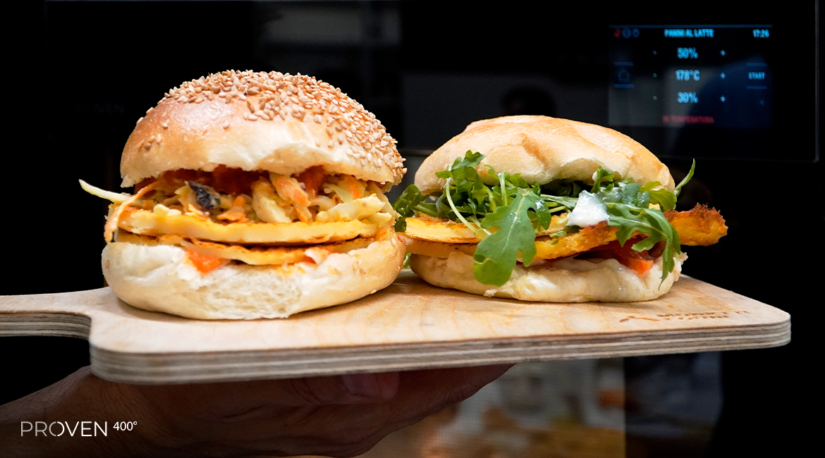 Ago192023RICETTEVuoi un’idea per creare un hamburger vegano, leggero ed estivo? La farinata è ottima per farcire i buns e creare degli hamburger veg originali e deliziosi. In questa ricetta troverai come preparare un burger di farinata di ceci cotta al forno da condire con aggiunta di ketchup ‘arrosto’ e coleslaw oppure con rucola, maionese e formaggio spalmabile vegani. Grazie ai programmi preimpostati di Proven, e al suo perfetto bilanciamento del calore, la preparazione sarà facilissima per un risultato da chef. Ricetta farinata di ceci facile Cominciamo con la farinata di ceci, un piatto di origine ligure semplice e gustoso. INGREDIENTI per due teglie da 40 cm di diametro Farina di ceci 390 g Acqua 1.220 g Sale 12 g Olio 60 g Calore: Proven, programma ‘farinata’ PREPARAZIONE Come fare la farinata di ceci Pastella: Preparare la pastella 4-6 ore prima della cottura. Mescolare la farina di ceci con metà dell’acqua, con l’aiuto di una frusta, e stemperare i grumi. Aggiungere il sale e la rimanente acqua, mescolando bene. Lasciar riposare la pastella 5-10 minuti, quindi rimuovere il cappello di schiuma con una schiumarola. Cottura: 40 minuti prima di cuocere, preriscaldare Proven con l’apposito programma ‘farinata’, inserendo il piano in lamiera bugnata. Al momento di cuocere, mescolare bene la pastella e pesarne 760 g con una brocca, aggiungere 30 g di olio extra vergine di oliva, mescolare. Ungere la teglia con abbondante olio extra vergine di oliva, versare il composto, infornare e avviare il programma. Una volta pronta, sfornare e lasciar raffreddare la farinata prima di tagliarla. Per completare la farcitura del burger vegano di farinata c’è bisogno di un condimento speciale. Ecco due idee originali e gourmet: ketchup “arrosto” con coleslaw oppure rucola, maionese e formaggio spalmabile vegani. Ketchup arrosto Come preparare il ketchup INGREDIENTI Pomodori ciliegini 500 g Peperoni 300 g Cipolla rossa 150 g Aceto di mele 20 g Zucchero 15 g Olio extra vergine di oliva 20 g Sale q.b. Pepe nero macinato q.b. Calore: Proven, programma ‘verdure al forno’ e funzione Pro-Grill™ PROCEDIMENTO E COTTURA Preriscaldare Proven, montare i supporti laterali e posizionare la griglia al secondo livello, selezionando il programma ‘verdure al forno’. Nel frattempo, lavare tutte le verdure e tagliare i pomodorini a metà, i peperoni a listarelle e la cipolla a fette non troppo sottili. Disporre la cipolla su una teglia antiaderente, condire con metà dello zucchero, olio, sale e pepe. Infornare e cuocere seguendo il programma verdure al forno, irrorando le cipolle appena sfornate con aceto di mele, poi lasciar raffreddare. Infornare i pomodori su una teglia rivestita di carta forno, fare un unico strato e posizionarli con il taglio verso l’alto. Condire con metà dello zucchero, olio, sale. Cuocere secondo il programma verdure al forno. Mettere i peperoni su un’altra teglia e condirli con sale e olio. Scaduto il timer di cottura dei pomodori, lasciarli in forno, attivare la funzione Pro-Grill™ e continuare la cottura per 2-3 minuti. Sfornati i pomodorini, infornare peperoni che cuoceranno in modalità Pro-Grill™ per 10 minuti. Una volta che tutte le verdure sono fredde, mixare con un frullatore a immersione e regolare di sale. Maionese vegana La maionese vegana è una salsa cremosa che darà una marcia in più ai vostri hamburger. INGREDIENTI Latte di soia 100 g Senape in grani 10 g Succo di limone 10 g Olio di semi 200 g Sale q.b. PROCEDIMENTO In un recipiente, versare la senape, il succo di limone e il latte di soia. Aggiustare di sale e, con l’aiuto di un frullatore ad immersione, emulsionare gli ingredienti. Una volta uniti, versare l’olio a filo senza mai fermare il frullatore ad immersione. A emulsione completata conservare una parte della maionese per la coleslaw. Cole slow Un’ottima coleslaw sarà l’accompagnamento perfetto per il tuo burger vegano. Ecco come prepararla: INGREDIENTI Carote 100 g Cavolo cappuccio 200 g Maionese vegana q.b. PROCEDIMENTO Tagliare a julienne tutte le verdure. Riporle in una ciotola e aggiungere la maionese vegana precedentemente preparata e messa da parte, mescolare il tutto. Crema di formaggio vegano La crema di formaggio vegano cremoso è perfetta per qualsiasi abbinamento. INGREDIENTI Formaggio vegano spalmabile 300 g Succo di limone 20 g Finocchietto q.b. PROCEDIMENTO Unire in un recipiente il formaggio, il succo di limone e il finocchietto spezzettato e mescolare fino ad ottenere un composto liscio e omogeneo. Con tutte queste varianti di salse e farciture, puoi sperimentare e lasciarti ispirare dalla cucina vegana! Esplora nuovi sapori e crea piatti unici e gustosi con Proven. Leggi ancheBomboloncini al forno con cioccolato e lamponi7 Luglio 2025Colomba tradizionale18 Aprile 2025Bagels6 Settembre 2024Éclair Mojito10 Agosto 2024Pizza Peach Summer5 Luglio 2024Pane al cioccolato con lievito madre14 Giugno 2024