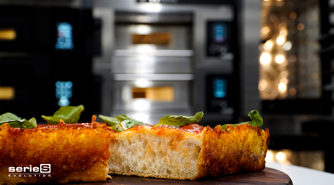 Lug72023RICETTENata a Detroit negli anni ’40 da pizzaioli di origine siciliana, la Detroit style pizza è diventata l’ultimo trend nella scena gastronomica mondiale, conquistando il cuore di tutti i pizza lover. Questa pizza si distingue per la mozzarella filante che forma la caratteristica “corona” lungo tutto il perimetro e per la sua irresistibile croccantezza. Per ottenere una cottura perfetta il nostro forno serieS è la scelta ottimale. Grazie alla combinazione delle tecnologie Delta-Power e Dual-Power, ogni angolo della pizza viene cotto in modo omogeneo, garantendo un risultato eccellente ad ogni morso. Inoltre, la valvola vapori di cui è dotato serieS, assicura un’asciugatura ideale del prodotto finale. Ecco la ricetta per una perfetta pizza Detroit style INGREDIENTI per una teglia 25x35x6h Per l’impasto Farina tipo 0 o 00 (W 260/280) 400 g Acqua 300 g Lievito di birra fresco 4 g Sale fino 11 g Olio extra vergine d’oliva 11 g Per la farcitura Passata di pomodoro 200 g Sale fino 10 g Mozzarella in filoni 150 g Formaggio Brick del Wisconsin (va bene anche la scamorza o un formaggio a pasta asciutta) 350 g Olio extra vergine d’oliva 20 g Spicchi di aglio 1 Calore: serieS Multibake Precottura: 240 °C 40% cielo 60% platea, 7 minuti Refining: 240 °C 40% cielo 60% platea, 8 minuti Cottura: 240 °C 40% cielo 60% platea, 15 minuti PROCEDIMENTO Impasto: Mettere la farina, il lievito di birra e 200 g di acqua nell’impastatrice. Avviare in prima velocità per 6 minuti. Aggiungere il sale e l’acqua restante e passare in seconda velocità. Unire l’olio a filo. A fine lavorazione la temperatura dell’impasto dovrà essere di 26 °C. Trasferire l’impasto in un contenitore oleato e lasciarlo a temperatura ambiente per 60 minuti. Piegare l’impasto formando un rettangolo da circa 700 g e lasciare a 26 °C per 2 ore. Ungere la teglia, allargare l’impasto utilizzando semola rimacinata e metterlo nella teglia, finire di stenderlo (in caso di precottura spennellare la superfice con olio). Mettere il tutto in una cella umidificata o coperta con pellicola a 26 °C per altre due ore. Riscaldare serieS Multibake a 240 °C, 40% cielo 60% platea. Farcitura: In un’altra teglia da forno, soffriggere uno spicchio d’aglio con l’olio e la passata di pomodoro. Coprire con un coperchio forato per non sporcare il forno. Cuocere per circa 30-40 minuti in base al quantitativo di passata. Grattare il formaggio Brick del Wisconsin (in alternativa utilizzare una scamorza o comunque un formaggio a pasta asciutta) e la mozzarella e mescolarle. Per i prossimi step puoi scegliere se fare precottura + refining oppure solo cottura. Precottura: Una volta che serieS avrà raggiunto la temperatura impostata infornare la pizza. Cuocere la teglia per 7 minuti, sfornare ed abbattere. Refining: Impostare serieS Multibake 240 °C, 50% cielo 50% platea. Farcire la pizza con 500 g di formaggio iniziando dai lati e distribuendolo uniformemente. Infornare per 8 minuti a valvola aperta. Una volta raffreddata guarnire con la passata di pomodoro e alcune foglie di basilico. Cottura: Per cuocere la pizza in un solo passaggio, impostare serieS Multibake a 240 °C, 40% cielo 60% platea. Farcire con 500 g di formaggi iniziando dai lati, distribuendoli uniformemente. Infornare per 14 minuti a valvola aperta. Una volta raffreddata guarnire con la passata di pomodoro e alcune foglie di basilico. Leggi ancheBomboloncini al forno con cioccolato e lamponi7 Luglio 2025Colomba tradizionale18 Aprile 2025Bagels6 Settembre 2024Éclair Mojito10 Agosto 2024Pizza Peach Summer5 Luglio 2024Pane al cioccolato con lievito madre14 Giugno 2024